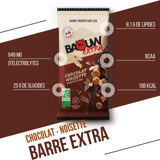 Barre Énergétique BAOUW BIO EXTRA Chocolat-Noisette (50g)