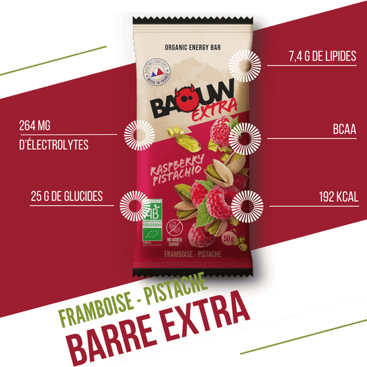 Barre Énergétique BAOUW BIO EXTRA Framboise-Pistache (50g)