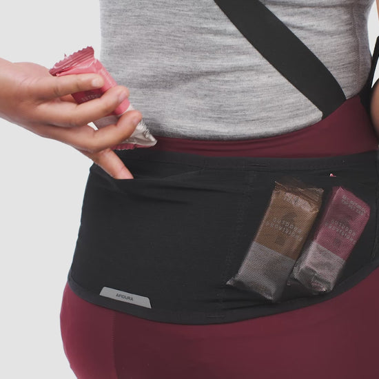 Compatible avec un maillot ou un t-shirt, elle se positionne au niveau des hanches afin d’améliorer la répartition du poids et d’assurer un confort durable. Cette configuration constitue une alternative pratique pour les cyclistes ne disposant pas de cuissards cargo, tout en restant stable et discrète.