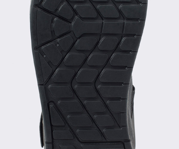 Das Muster der Sohle ist so gestaltet, dass es sowohl auf dem Fahrrad als auch zu Fuß maximale Traktion bietet. Die direktionalen Stollen an Zehen und Fersen bieten optimale Traktion beim Wandern in steilem Gelände.
