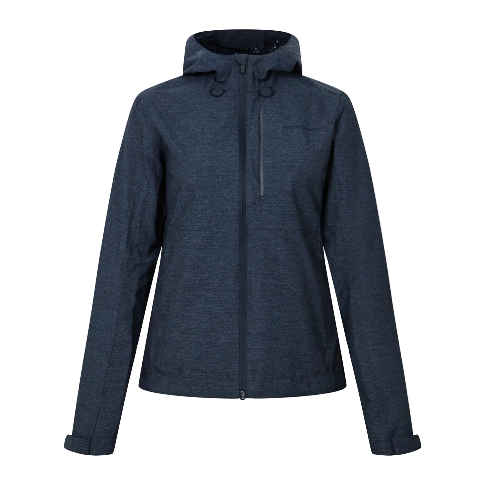 La veste dispose de grandes aérations zippées sous les bras pour réguler la température corporelle. Le capuchon est doté d'un système de réglage discret, tandis que la protection de tempête intégrale derrière la fermeture éclair avant garantit une étanchéité supplémentaire. Les poches zippées sur la poitrine et les mains ajoutent des options de rangement pratiques.