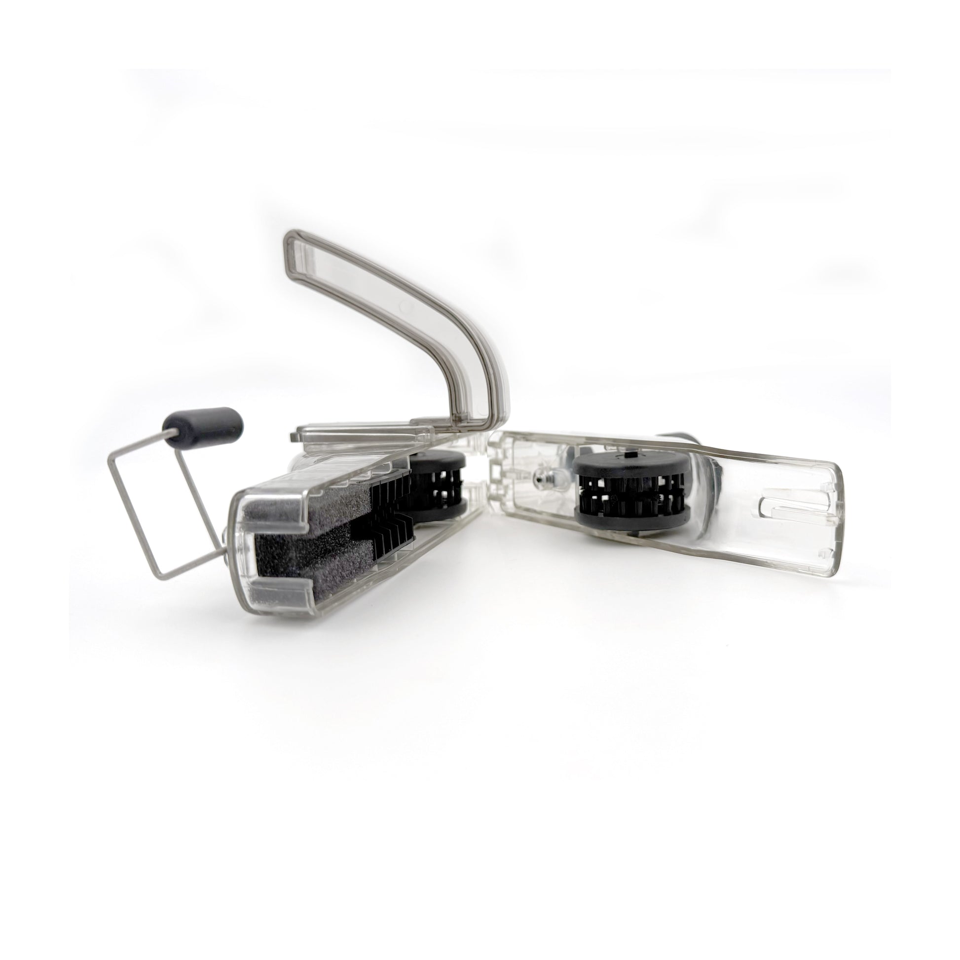 Deux rouleaux avec des poils multidirectionnels assurent un brossage en profondeur, tandis qu’un aimant au fond du nettoyeur collecte les particules métalliques détachées, empêchant qu’elles ne se déposent à nouveau sur la chaîne. Un outil indispensable pour des performances optimales.