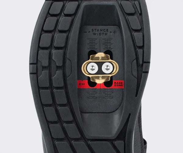 Le composé de caoutchouc à friction moyenne (MC1) permet une entrée et une sortie faciles de la pédale, en plus d'être suffisamment dur pour résister à l'usure. Le motif de pattes radiales autour de la cale est conçu pour permettre une libération en douceur de la chaussure.