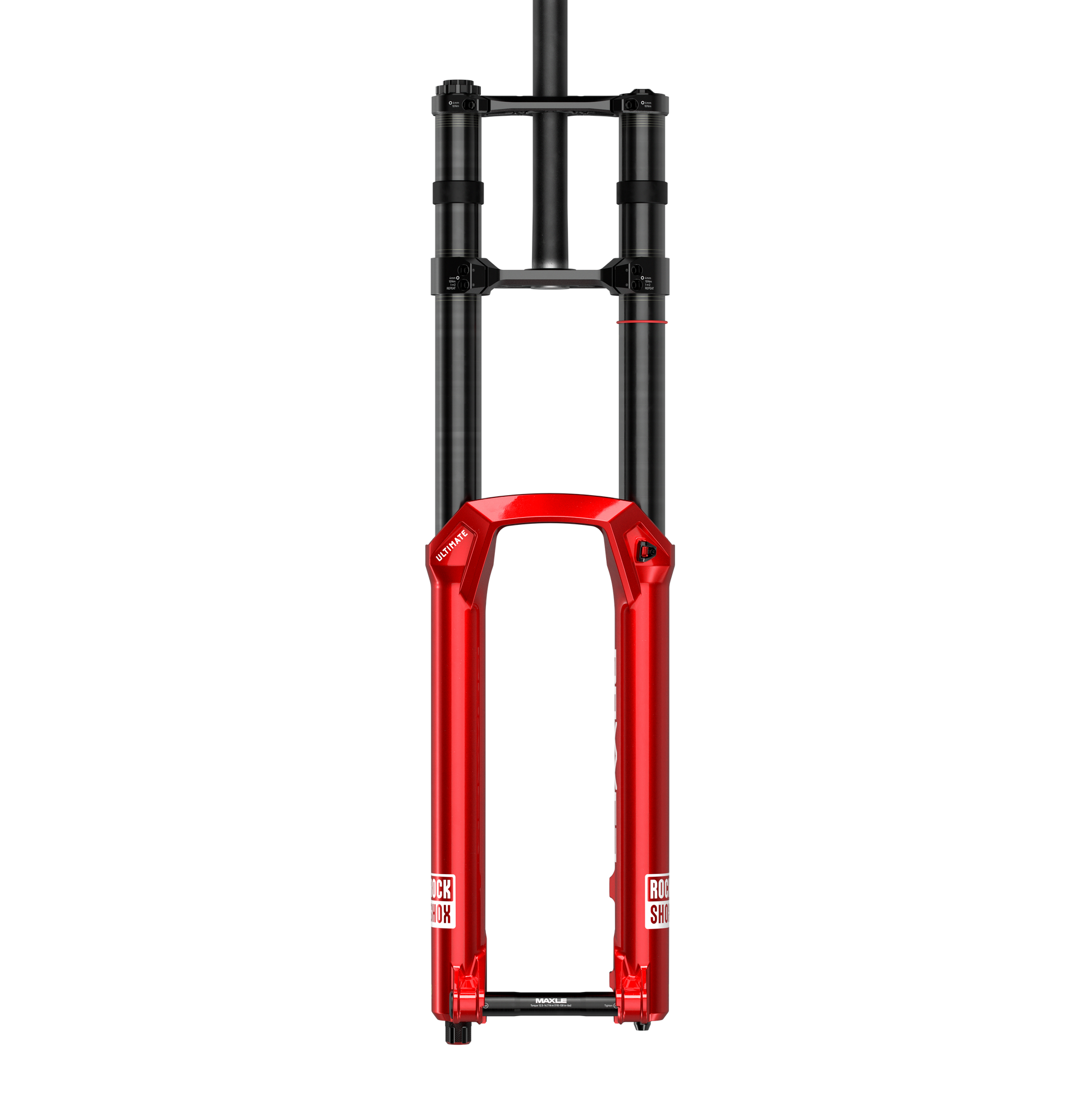 La fourche adopte une esthétique remaniée au design minimaliste, disponible en coloris Signature Electric Red et Ultimate High Gloss Black.