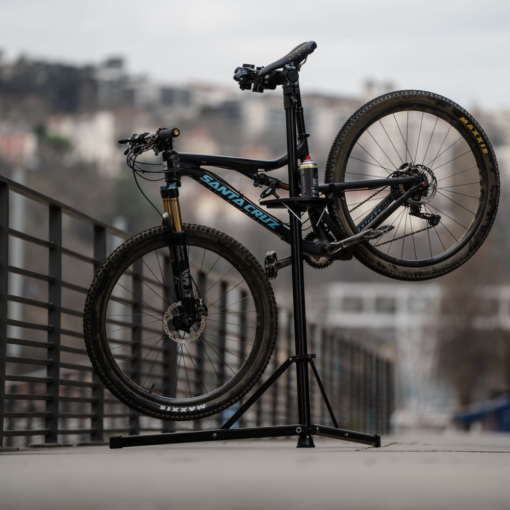 Construit en aluminium léger, il offre une excellente stabilité grâce aux capuchons de pied renforcés et peut supporter jusqu’à 25 kg, garantissant la sécurité de votre vélo pendant les interventions.